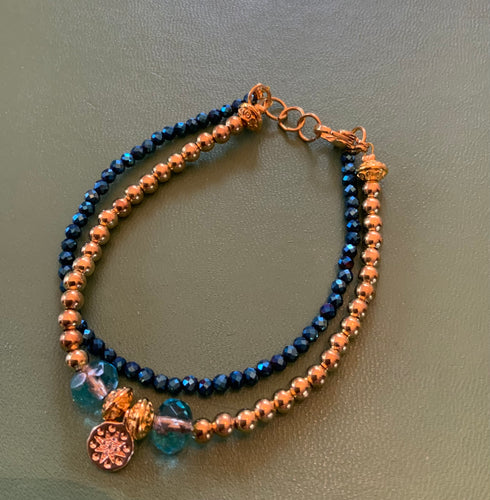 Double Strand Gold Filled and Sapphire Colored Chain with Starburst Crystal, Gold Filled Charm
