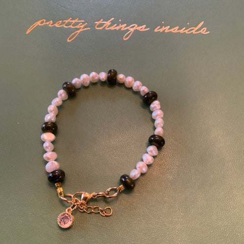 Gemstone and Freshwater Pearl Bracelet with Chain Extension and Gold Plated Clear, Crystal Charm